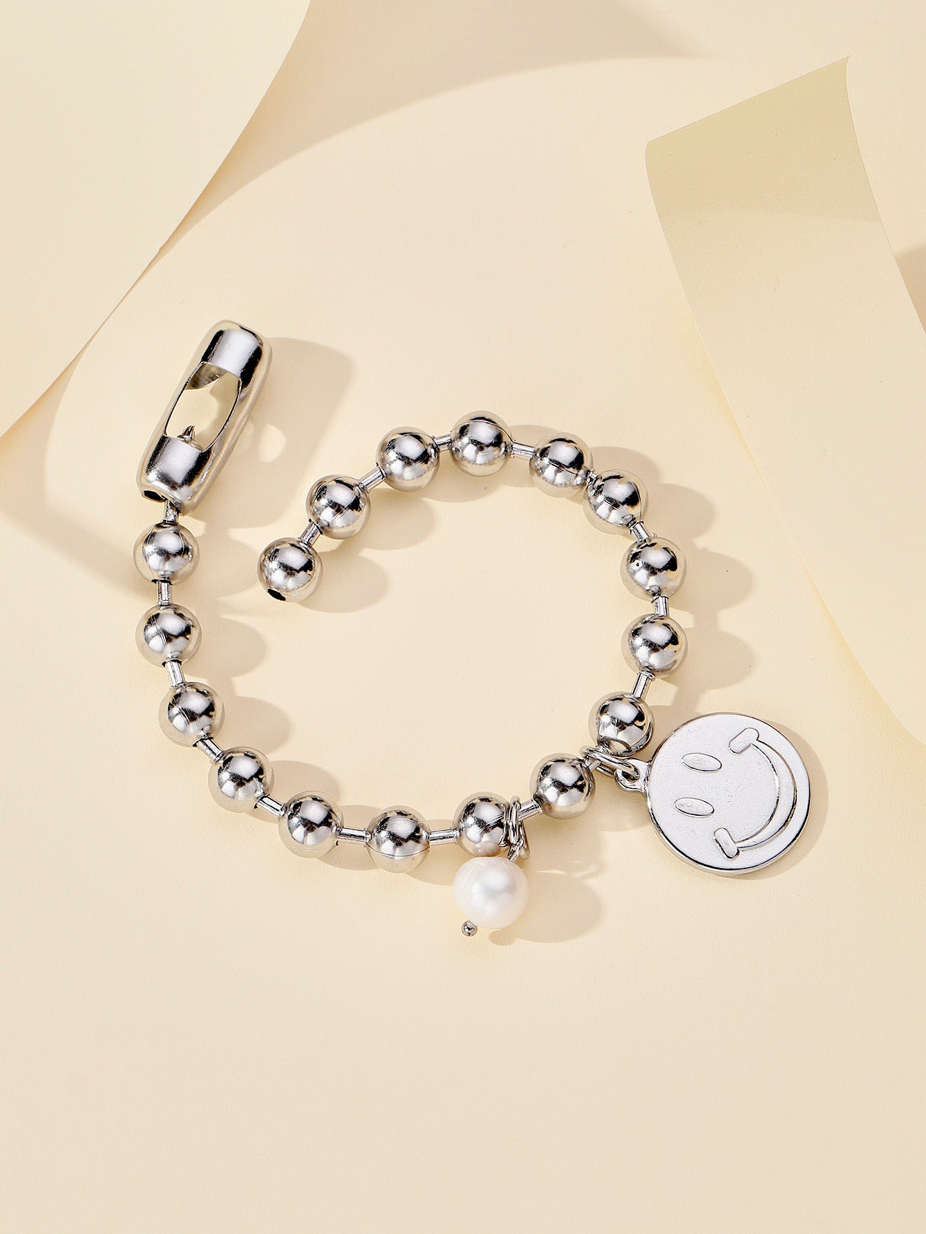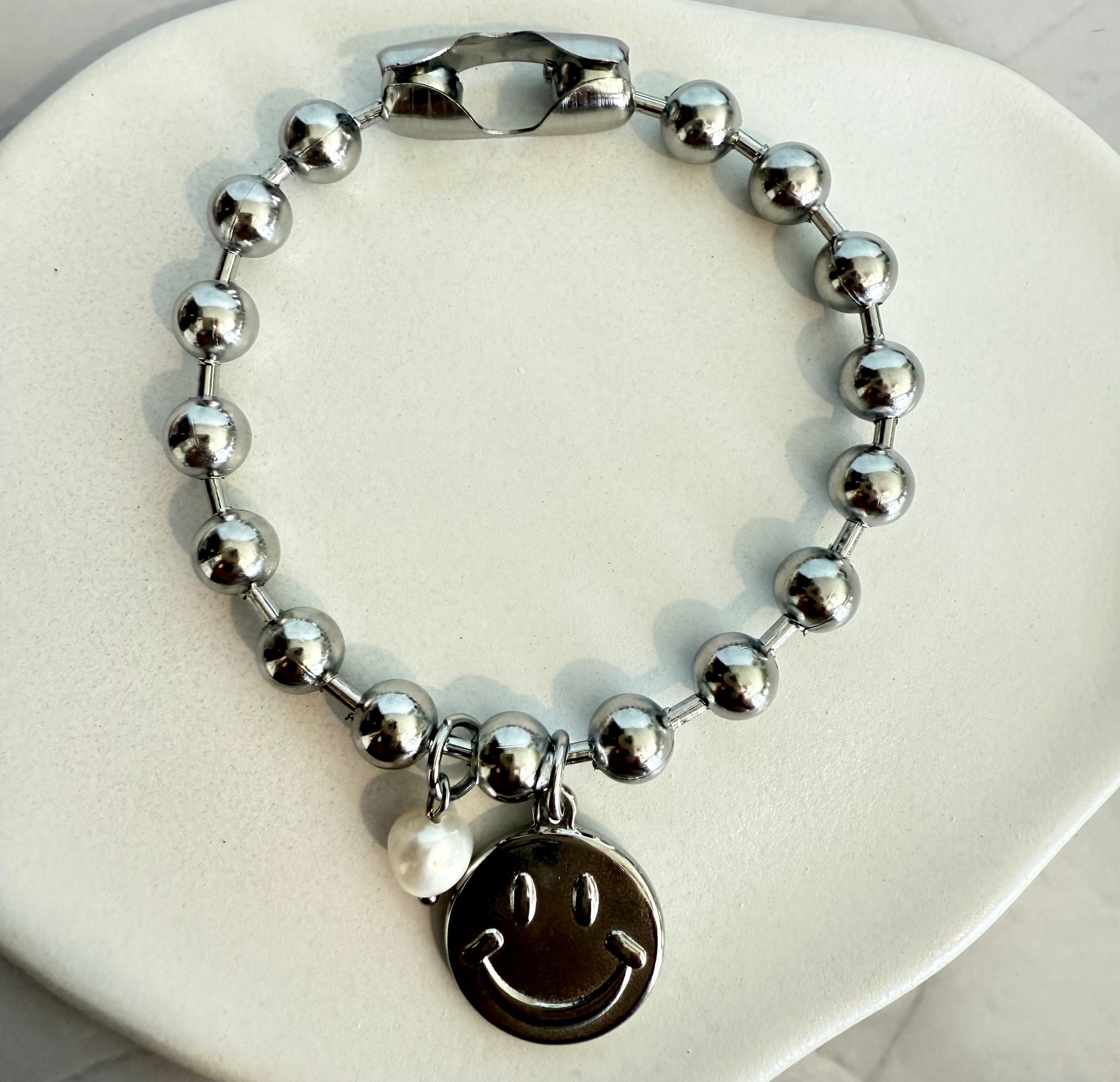 Pulsera con charm smile y detalle de perla. Resistente, moderna y perfecta para uso diario o regalo