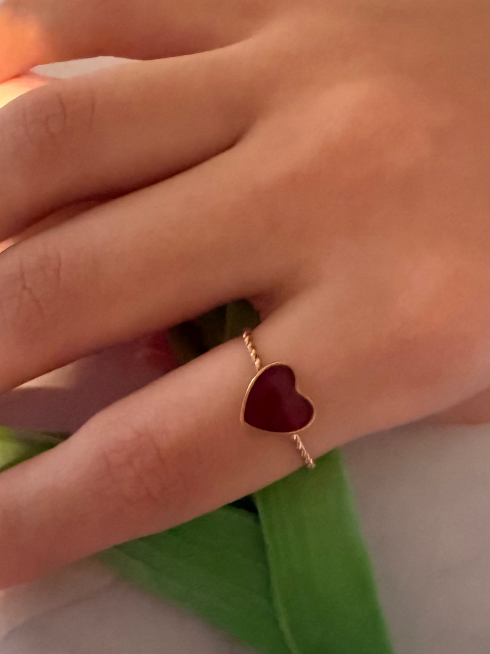 Lleva el amor en tus manos con este delicado anillo ajustable de banda fina y detalle de corazón. Disponible en diferentes tonos para que elijas el que mejor combine con tu estilo.